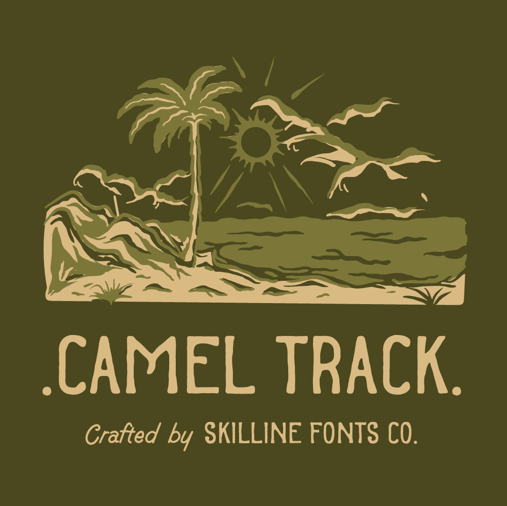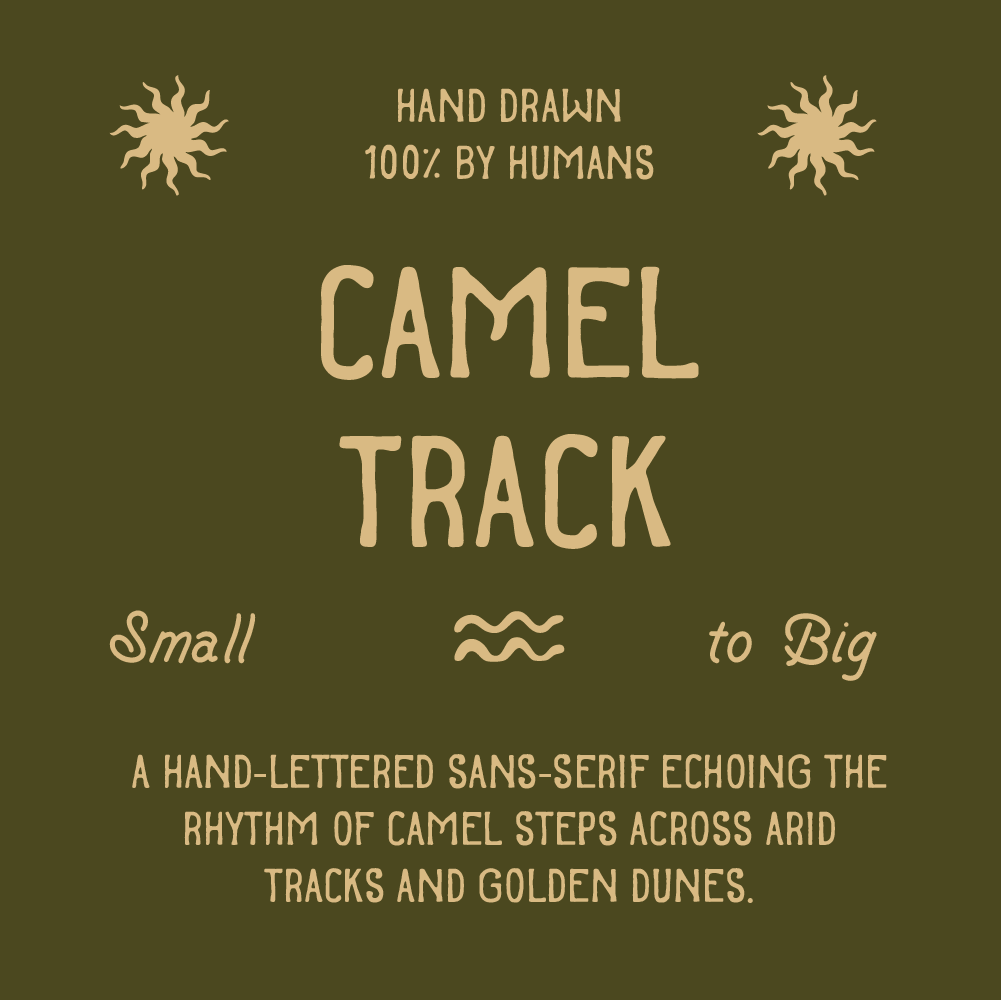 Camel Track is a rustic vintage font with a handlettered sans serif style, crafted with bold strokes, subtle imperfections, and timeless character. Designed for modern creatives who want a touch of nostalgia, it strikes the perfect balance between rugged authenticity and versatile usability. Whether you’re building a retro brand, designing editorial layouts, or crafting artisanal packaging, Camel Track brings raw personality and lasting charm to your projects. Its handcrafted sans serif structure with organic lines gives it a warm, authentic qualit, perfect for badges, logos, posters, labels, and merchandise.