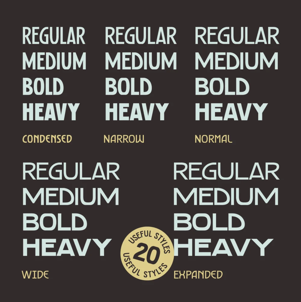 With five widths: Condensed, Narrow, Normal, Wide, and Expanded and four weights, Primorsa offers 20 versatile styles plus a variable font, making it ideal for flexible layouts across both print and digital media.